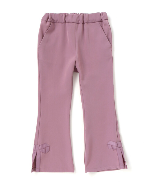 -25AW- ちょっぴりレトロな雰囲気が可愛いフレアパンツ。 ■デザイン 軽い履き心地で幅広いシーズンに使いやすいダブルクロスを使用。 膝下から広がったフレアのシルエットと裾のスリットが、脚をスッキリと長く見せてくれます。 スリット部分には同色でリボン風のモチーフをつけて、さりげない可愛らしさをプラス。 くすみ感がおしゃれなパープルと、ベーシックに使いやすいブラックの2色展開。 おしりポケットの下にさりげなくロゴ刺しゅうが入っています。 ■素材/機能 シワになりにくくさらっとした風合いのダブルクロスの生地を使用。 つやのある生地感でキレイ目コーデにもよく合います。 ※両脇・おしりポケットあり。 ※ウエスト裏にゴム調節口あり。 25秋冬 女の子アイテム 【8月 GIRL/BOY】 - 旅の始まり - 長旅のスタートはパリから。 服や本、おもちゃにカメラ、トランクいっぱいにお気に入りを詰め込んで旅に出かけよう! レディライクなパリジェンヌルックの女の子と、楽しいレイヤードスタイルの男の子。 カラーや素材の組み合わせで、旅に向かうワクワク感を表現しています。 【2025年秋冬 シーズンテーマ】 -クルーズ・私の行く先- レストランやブティック・劇場・図書館にカフェまるでひとつの街のように巨大な架空の豪華客船での船旅をイメージしたコレクション。 上質さや品の良さをベースに遊び心や楽しさをプラスしたブルジョワシックなスタイルを提案します。 【BeBe(べべ)】 ”LOVE MODERN” 少しおませで、生意気なヨーロピアンカジュアルの提案。 時代性・流行性をとらえ、ベーシックでもワンポイントを施した遊び心、楽しさを盛り込んでいます。 シンプルだけど、こだわりのあるオリジナリティーを重視しています。