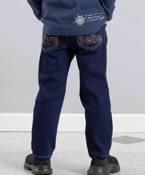 -25AW- おしりポケットのステッチロゴがおしゃれなデニムロングパンツ。 ■デザイン 縦横にストレッチ性のあるジョグデニム素材を使ったデイリーから幅広く使えるパンツです。 合わせやすさのあるシンプルなストレートのシルエット。 フロントはシンプルに合わせやすく、バックにあたたかみのあるステッチロゴを入れています。 大人っぽさのある濃いネイビーのカラーです。 ウエスト部分のベルトループや飾りボタンなど細かい仕様までこだわったパンツです。 ■素材/機能 伸縮がよく柔らかいジョグデニムはシーズンごとのリピーターの方も多い素材です。 ※生地の特性上、色落ちや色移りする可能性があります。淡色製品とあわせての洗濯・着用に十分ご注意ください。 ※ウエスト裏にゴム調節口あり。 ※両脇・おしりポケットあり。 ※ロゴ刺しゅうの見え方はサイズにより異なります。 25秋冬 男の子アイテム 【8月 GIRL/BOY】 - 旅の始まり - 長旅のスタートはパリから。 服や本、おもちゃにカメラ、トランクいっぱいにお気に入りを詰め込んで旅に出かけよう! レディライクなパリジェンヌルックの女の子と、楽しいレイヤードスタイルの男の子。 カラーや素材の組み合わせで、旅に向かうワクワク感を表現しています。 【2025年秋冬 シーズンテーマ】 -クルーズ・私の行く先- レストランやブティック・劇場・図書館にカフェまるでひとつの街のように巨大な架空の豪華客船での船旅をイメージしたコレクション。 上質さや品の良さをベースに遊び心や楽しさをプラスしたブルジョワシックなスタイルを提案します。 【BeBe(べべ)】 ”LOVE MODERN” 少しおませで、生意気なヨーロピアンカジュアルの提案。 時代性・流行性をとらえ、ベーシックでもワンポイントを施した遊び心、楽しさを盛り込んでいます。 シンプルだけど、こだわりのあるオリジナリティーを重視しています。
