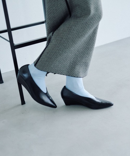 深めのカットで今年らしいパンプス 【デザイン】 ・派手にならずに取り入れやすい落ち着いたトーンのガンメタと、高見えさせてくれる細かな素材感のブラックをご用意 ・ウェッジソールなので安定感もあり、疲れにくいのもポイント ・ポインテッドトゥで辛めな印象ながら、やりすぎていない適度なシャープさも〇 【コーディネート】 ・ワイドパンツやコクーンパンツと合わせてモードな着こなしをするのがおすすめ --------------------------------------------------- 【気になる商品はお気に入り登録がおすすめ!】 ・在庫残りわずか ・再入荷 ・セールの情報 などの通知を受け取ることができます。 気になる商品は♡をクリックして、 「お気に入り登録」しましょう! 【ショップ・ブランドのお気に入り登録も!】 新商品や再入荷、セール、クーポンの配布など、 いち早くお得な情報を受け取ることができます。 ---------------------------------------------------