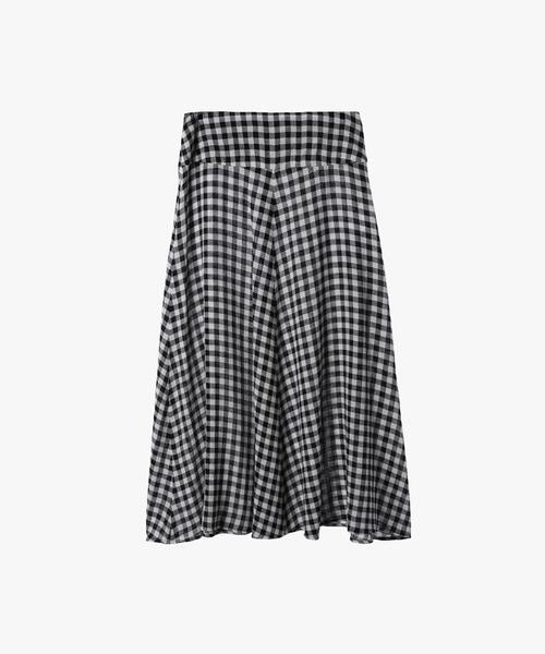 軽やかな揺れ感が魅力のギンガムチェック柄スカート。 ウエストまわりはすっきり見える設計で、スタイルアップ効果も◎。 カジュアルにもフェミニンにも着こなせる万能アイテム。 季節問わず活躍する、一枚は持っておきたい優秀スカートです。 原産国:チュニジア 組成:レーヨン70% 毛30% 実寸情報 36(S) ウエスト:70cm/総丈:82cm 38(M) ウエスト:74cm/総丈:83cm 40(L) ウエスト:78cm/総丈:84cm 42(XL) ウエスト:82cm/総丈:85cm (##)