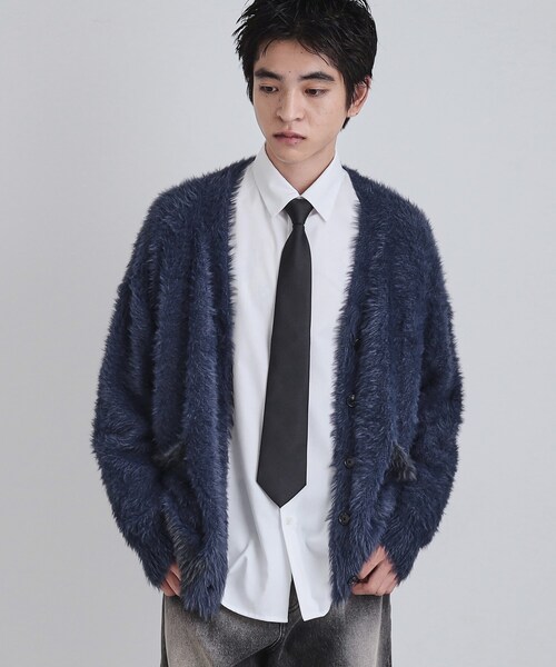 【素材】毛足が長くファーのようにたっぷりとしたボリューム感が存在感のあるフェザーヤーンを使用しています。ゲージ:7ゲージ※ポリエステルストレッチとプレーティングして一緒に編むことで、 天竺ながらダレ感少なく着用時のシルエットをキープできる工夫をしていますが、 糸の特徴でハンガーに吊っていると非常に伸びやすいです。【デザイン】毛足が長いフェザーヤーン。なめらかなタッチでやみつきになる触り心地。ポケットとリブ部分を微配色にしたデザイン。オーバーサイズ設計ながらもコンパクトな着丈に仕上げています。※非常に伸びやすい素材のため、長くなることを想定してやや短めに設計しています。Tシャツやシンプルなシャツを合わせた際に、インナーをタックインした上でこのカーディガンをさらっと羽織っていただくスタイルがおすすめ。【仕様】・ポケット数:横×2【推奨サイズ】01サイズ(S):160~170cm02サイズ(M):165~175cm03サイズ(L):170~180cm※標準体型を基にした目安になります。- BRAND CONCEPT -時代を超えて支持されるトラディショナルなアイテムをベースに、アソビ心とストリートの自由な発想を取り入れ、日本独自のミックススタイルを提案します。【気になる商品はお気に入り登録をおススメ】▼商品のお気に入り登録完売しているカラーの再入荷通知や、ラスト1点、セールの通知をお知らせいたします。▼ブランドのお気に入り登録新商品や再入荷など、いち早くブランドの情報を受け取ることができます。※照明の関係により、実際よりも色味が違って見える場合があります。また、パソコン・スマートフォンなどの環境により、若干製品と画像のカラーが異なる場合もございます。モデル情報:身長180cm B86 W69 H93 着用サイズ:03(L)店舗へのお問い合わせ商品番号:170-14400●製品寸法:01(S):着丈61cm B112cm 袖丈48cm 肩幅52cm02(M):着丈63cm B116cm 袖丈49cm 肩幅54cm03(L):着丈65cm B120cm 袖丈50cm 肩幅56cm備考: