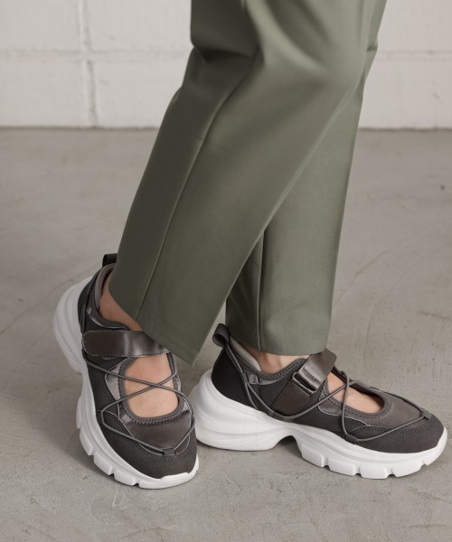 ■POINT数種類の素材を組み合わせたハイブリットスニーカー!レザーライクな素材と、ダイバー素材を組み合わせた大人っぽさとスポーティーさが絶妙なバランスのスニーカー!ソール部分はあつみをもたせていますが、とても軽くて履きやすい◎長時間はいていても疲れづらいのが嬉しいポイントです。甲の部分にストラップがついているので安定感も◎…………………透け感:なし裏地:なし…………………★商品のお気に入り登録 登録すると、完売しても再入荷時に通知を受け取ることができます。 ほかにもお得な特典があるかもしれません♪ ★ブランドのお気に入り登録 新商品や再入荷などの情報を受け取ることができますので、是非ご登録ください♪