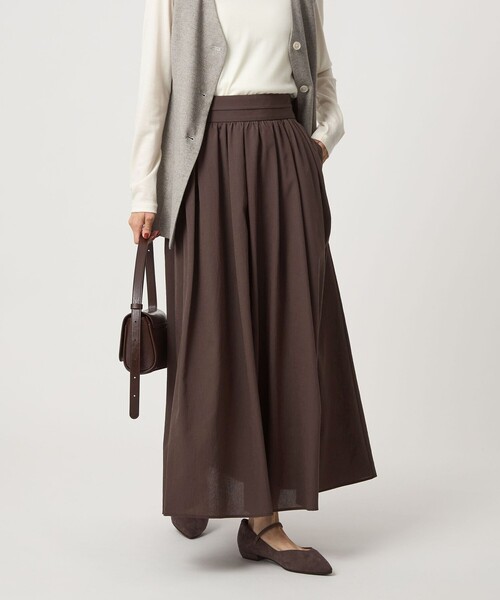 大人フェミニンな着こなしを叶えるスカート■デザインふんわりとしたシルエットが着映えするスカート。さらっと着られる軽い着心地が魅力です。歩く度にふんわり揺れる裾がフェミニンな雰囲気を演出。ウエスト部分は内側にアジャスターがついており、サイズ感を調整できるようお作りしました。また、ウエストはバックゴム仕様でイージーな着心地なのも嬉しいポイント◎お仕事からデイリーまで幅広いシーンで重宝する一着です。■素材さらりとした素材感が軽やかな雰囲気で着用いただけます。■コーディネートコンパクトなシルエットのトップスとの合わせがバランスよく着用いただけます。カットソーを合わせてラフな雰囲気で着用いただくのも◎#秋服,#冬服,#オンオフ兼用,#仕事,#デイリー,#通勤============================裏地:あり透け感:ライトグレー ややありケア方法:洗濯機洗い可============================【注意事項】※商品に「取り扱い上の注意書き」、「洗濯表示」がございます場合は、使用前に必ずご確認ください。※商品画像は、光の当たり具合やパソコンなどの閲覧環境により、実際の色味と異なって見える場合がございます。あらかじめご了承ください。※商品の色味の目安は、商品単体の画像をご参照ください。店舗へお問い合わせの際は、全国のgreen label relaxing各店舗まで下記の品名/品番をお申し付けください。品名:CS Airy GA SK②_A 品番:35241000007