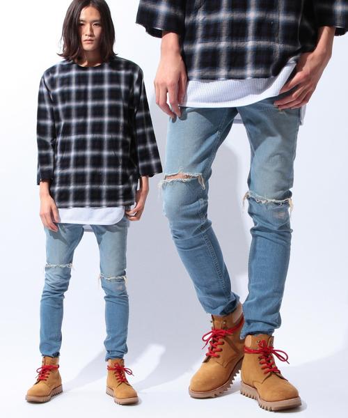 <monkey time>オリジナルの11ozのデニムを使用したスキニーパンツに、クラッシュタイプの新作が登場。 グランジ、ボヘミアンなアイテムとの相性も良く、スポーティーアイテムの外しとしてもおススメです。 店舗にてお問い合わせの際は、全国のBEAUTY&YOUTH 各店舗まで下記の品番をお申し付け下さい。 品名:MT CLASH STRC/DNM SKINNY 品番:1284-213-0360 ※画像の商品はサンプルです。 実際の商品と仕様、加工、サイズ、素材が若干異なる場合がございます。 model:H184 B82 W71 H93 着用サイズ:L