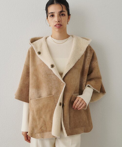 【2025AW】上質な素材感と丁寧な仕上げが魅力のムートンポンチョ■ムートン素材を贅沢に使用したフード付きポンチョ。■ウールを約5mmの短さに加工し、カーリーとストレートの中間の独特な表情を実現。■スエード加工を施したレザー面は肌理の細かさが原皮の良さを引き立て、バッフィング加工を施すことで色ムラの味わい深さを表現。■サイドにはスナップボタンをあしらい、着こなしやすさとデザイン性を両立。■上質な素材感と丁寧な仕上げが大人のスタイリングに馴染む、周りと差のつく一着。【COLOR】ベージュ:上質感とカジュアル感を併せ持つ柔らかなベージュ。【MATERIAL】ウールを5mm程度と短く加工、軽くストレート加工をする事でカーリーとストレートの中間の様なウールを表現した羊革。※天然皮革を使用しているため、色味や毛並みに個体差がございます。予めご了承ください。※着用時の摩擦などにより毛抜けや毛羽立ちが生じ、毛羽が付着する可能性がございます。※こちらの羊革は、すべて食肉の生産を目的に飼育された動物の副産物です。----------------------------------------------------洗濯方法:皮革専門クリーニング店に相談透け感:なし裏地:なし伸縮性:なし光沢感:なし----------------------------------------------------【注意事項】・画像の商品はサンプルです。実際の商品と仕様、加工が若干異なる場合があります。また 、パソコンやスマートフォンのモニター環境などにより、色味が違って見える場合があります。・店頭及び屋外での撮影画像は、光の当たり具合で色味が違って見える場合があります。商品の色味は、スタジオ撮影の画像をご参照ください。・入荷状況により、お届け予定が前後する場合があります。・お客様への発送が店頭販売より遅れる場合があります。・追加生産商品は、一部の店舗、通販で販売中の場合があります。予めご了承下さい。【気になるアイテムは、「お気に入り」登録を】ハートマークをクリックしておくことで、スムーズにお買い物が楽しめます。・ラスト一点のお知らせ・再入荷のお知らせ・SALEのご案内