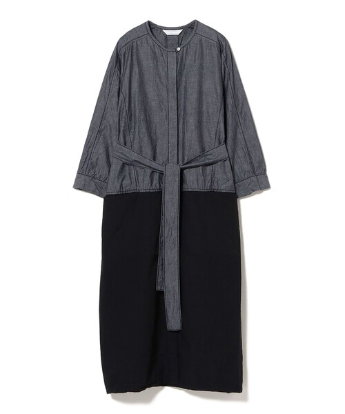 配色が目を惹くワンピース■デザインフロントボタンが隠れた比翼仕立ての七分袖ワンピース。背中側のタックがすっきりとした後ろ姿のシルエットを作ってくれます。ボタンを全て外して羽織りとして着たりと季節の変わり目にも着やすい。ウエストのリボンはお好みで使っていただけます。所々で使われている太番手糸のステッチもポイント。■素材薄手のシャンブレー生地でさらっとした着心地。通年で着用でき、洗いこむことで風合いが増していきます。■ケア方法水洗い・ドライクリーニング両方可(詳細は商品についている品質表示ラベルをご覧ください)homspun 2000年、自分達の着たい服を自分達で作ろうと女性の友人同士3人でスタートしたブランド。「素朴な、シンプルな、飾らない」がhomspunらしさで、さらっと日常着として着られる大人のためのシンプル・ウェア。素材感を大切にし、着込んでいくことで独特な風合いが生まれ、愛着が感じられます。ブランドコンセプト「いつでもそこにひっかけておける 洗いざらしでも気軽にずっと着られる」