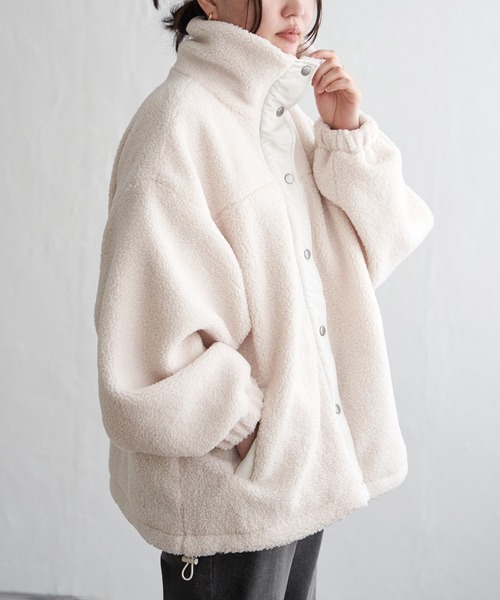 ふんわりボアで存在感を放つ、デイリーに活躍する万能ブルゾン【デザイン】トレンドに左右されないベーシックなルックスに、程よいボリューム感をプラス。スタンドカラーで首元まで暖かく、ジップ×ボタンの二重仕様で防寒性も◎。裾のドロストでシルエットを調整でき、スタイリングに合わせた着こなしが楽しめます。【素材】ふんわり柔らかなボア素材を使用し、見た目にも暖かくシーズンムードたっぷり。軽やかな着心地ながら保温性があり、毎日のコーデにぴったりです。【カラー】ブラック:シックでモードな印象にホワイト:クリーンで柔らかな雰囲気にブラウン:カジュアルで温かみのあるスタイルに【ディテール】・袖口ゴムで風を通しにくく、防寒性アップ・裾のドロストでシルエット変化が可能・便利な左右ポケット付き【おすすめコーディネート】デニムやワイドパンツと合わせれば、こなれたカジュアルに。スカートやワンピースに羽織れば、ボリューム感とのバランスで女性らしい着こなしに。シンプルなデザインだからこそ、長く愛用できる万能アウターです。★Instagramにて近日発売予定のアイテムやルックをご紹介しております。 @vence_sharestyle[洗濯方法]洗濯の際はネットを使用してください[クリーニング]手洗い可、ドライクリーニング可(F)、ウェットクリーニング(W)
