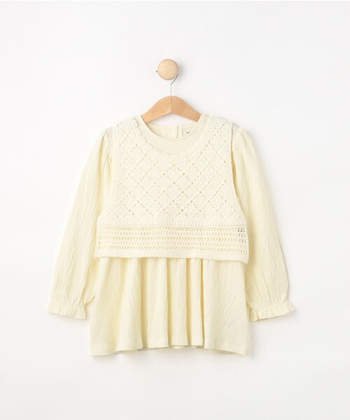 【デザイン】トレンド感のあるカギ編みベストと表面に凹凸のあるカットソー素材のチュニックワンピをコーデSETにしたお得なアイテム。それぞれ単品で着こなすこともできて、コーディネートの幅が広がります。チュニック丈なので、パンツに合わせてデイリーからお出かけまで楽しめそう。【素材】カギ編みのベストと、表面感のある楊柳カットソー素材のワンピースSETです。【仕様】・ポケットなし・裏地なし・後ろボタン※照明の関係により、実際よりも色味が違って見える場合があります。また、パソコン・スマートフォンなどの環境により、若干製品と画像のカラーが異なる場合もございます。店舗へのお問い合わせ商品番号:122-54001●製品寸法:10(100cm):プルオーバー着丈44cm B60cm 袖丈34cm 肩幅24cm ベスト着丈19cm B64cm 肩幅25cm11(110cm):プルオーバー着丈47cm B63cm 袖丈38cm 肩幅25cm ベスト着丈19cm B68cm 肩幅26cm12(120cm):プルオーバー着丈50cm B66cm 袖丈42cm 肩幅26cm ベスト着丈20cm B72cm 肩幅27cm13(130cm):プルオーバー着丈53cm B70cm 袖丈46cm 肩幅27cm ベスト着丈20cm B76cm 肩幅28cm14(140cm):プルオーバー着丈57cm B74cm 袖丈50cm 肩幅29cm ベスト着丈21cm B80cm 肩幅29cm15(150cm):プルオーバー着丈61cm B78cm 袖丈55cm 肩幅31cm ベスト着丈22cm B84cm 肩幅31cm備考: