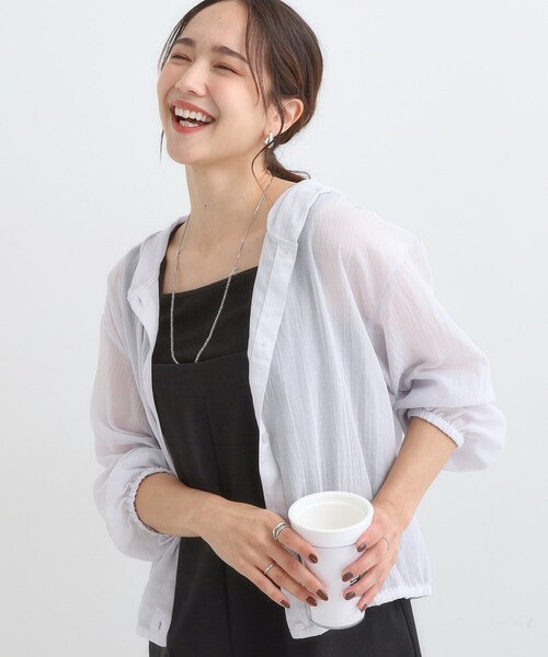 【デザイン】シアー感のあるボイル素材のフーディ―パーカ。ボタン開きでカーディガン感覚で羽織れます。お袖口と裾にゴムが入っており、ふんわりとしたシルエットがポイントです。【スタイリング】タンクトップやキャミソールの上にそのまま羽織って、デニムパンツと合わせた今年らしいスタイリングやワンピースに合わせた甘めスタイルもおすすめです。冷房対策としてバッグに入れて持っていたいアイテム。【素材】柔らかくふんわりと軽いボイル素材。肌触りが良く、着心地も良いです。※照明の関係により、実際よりも色味が違って見える場合があります。また、パソコン・スマートフォンなどの環境により、若干製品と画像のカラーが異なる場合もございます。#CutieBlonde#Cutie#cutieblonde#cutie#キューティブロンド#キューティモデル情報:身長163cm B81 W59 H88 着用サイズ:02(M)店舗へのお問い合わせ商品番号:256-34300●製品寸法:01(S):着丈52cm B106cm 袖丈48cm 肩幅52cm02(M):着丈53cm B108cm 袖丈48cm 肩幅52cm03(L):着丈54cm B110cm 袖丈49cm 肩幅53cm04(LL):着丈55cm B112cm 袖丈50cm 肩幅53cm備考: