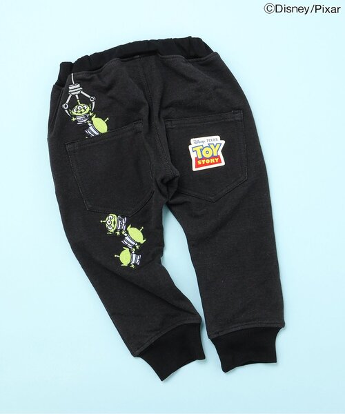 『トイ・ストーリー』の人気シーンをモチーフにした、遊び心たっぷりのジョガーパンツが登場! 後ろポケットには、「リトル・グリーン・メン」がUFOキャッチャーに“つり上げられる”あの名シーンを刺繍で表現。 さらに、後ろポケットには「TOY STORY」のロゴワッペンを刺繍であしらい、バックスタイルのアクセントに◎ 本体はやわらかくて伸縮性のあるニットデニム素材で、見た目はカジュアルでも動きやすさは◎ ウエストは総ゴム仕様、足元はすっきり見える9分丈デザイン。 シンプルなトップスとも合わせやすく、普段使いにもお出かけにもぴったりな1本です。 【取り扱い表示】 40℃を上限に洗濯機で洗濯、デリケートアイテムモード、ネット使用、漂白剤を使用禁止、色物は同系の色と一緒に、洗濯後直ちに取出し、タンブル乾燥不可、日陰で吊り干し、低温でアイロン、商業ドライクリーニング不可 【ご注意事項】 インディゴ染め・製品染め加工 この製品はインディゴ染料の使用または製品染め加工をしています。 1点ごとに風合いや色の出方、サイズ等が微妙に異なる場合がございます。 着用・洗濯時の摩擦や水濡れにより、色落ちをすることがございます。 洗濯は単独洗いで、長時間濡れたまま放置しないようにご注意下さい。 淡い色の衣類を着用の際は、十分にご注意いただき、他の製品に色移りした場合はすぐに洗濯してください。 着用やお洗濯を繰り返すことにより、風合いや色の変化をお楽しみいただけます。 ※商品により多少の誤差が生じる事がございます。あらかじめご了承下さい。 ※ご使用のパソコンやブラウザの環境により、実際の色とは多少異なる場合がございます。 ※モデル着用写真についてはイメージの為、実際の商品とカラーや仕様が異なる場合がございますので、商品画像をご覧ください。 【 BIT'Z -ビッツ- 】 毎日のワクワクする気持ちを大切に・・・ 子供の興味や好奇心を刺激するしかけや知育要素の入った楽しくユニークなデザインと 手の温もりを感じさせる拘ったイラストで展開していきます。 日常のお洒落にはもちろん、贈り物にも最適なブランドです。