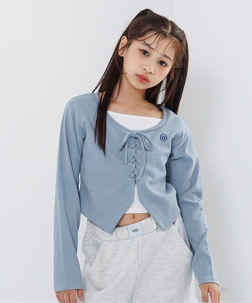 algy(アルジー)の長袖Tシャツ「レースアップレイヤード風トップス」。1枚で着ても重ね着してもかわいい万能アイテム◎XXS・・・125~135cmXS・・・135~145cmS・・・145~155cmM・・・155~165cm【 algy ーアルジー ー 】『おしゃれを楽しみたいティーンズのリアルクローズ』着たい 欲しい トレンド・・・全部そろう小中学生向けブランドです。【取り扱い表示】40℃を上限に洗濯機で洗濯、デリケートアイテムモード、ネット使用、漂白剤を使用禁止、色物は同系の色と一緒に、洗濯後直ちに取出し、タンブル乾燥不可、日陰で吊り干し、低温でアイロン、商業ドライクリーニング不可【ご注意事項】この商品は着用中の摩擦や洗濯により毛羽の乱れ、毛羽脱落、毛玉が生じることが有ります。できるだけ美しくご利用頂く為に次のことにご留意下さい。○毛玉は毛玉取り器またはハサミで丁寧にカットして下さい。○毛羽が他に付着した際はテープやブラシで除去して下さい。○他の製品とは洗わず、単独でお洗濯して下さい。○タンブル乾燥はお避け下さい。※商品により多少の誤差が生じる事がございます。あらかじめご了承下さい。※ご使用のパソコンやブラウザの環境により、実際の色とは多少異なる場合がございます。※モデル着用写真についてはイメージの為、実際の商品とカラーや仕様が異なる場合がございますので、商品画像をご覧ください。