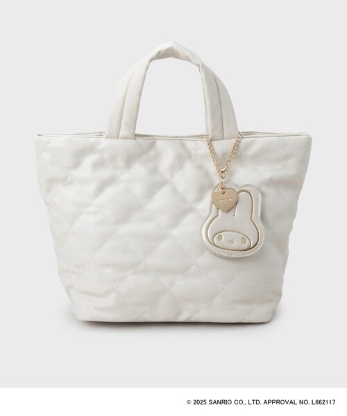 MY MELODY 50th Anniversary × OPAQUE.CLIP 初のコラボレーションは、マイメロディ50周年を祝うオトナ可愛いアイテムが勢揃い! 持っているだけでワクワクするフェイス型のキラキラポーチやミニショルダー。 限定ミラーチャーム付きの合皮素材のバッグは、デイリー使いにもぴったり! アニバーサリーを記念した特別なコレクションをお楽しみください。 【デザイン】 表面がダイヤキルトの合皮素材を使用したミドルサイズのトートバッグ。 中綿でふっくらとした立体感を表現しており、トレンド感のあるアイテムに。 内側は縫い付けのポケット付きで、本体は500mlペットボトルがしっかり収納できるサイズなのも嬉しいポイントです。 取り外し可能なマイメロディのお顔型オリジナルミラーチャーム付き。 周年を記念した限定デザインの下げ札とネームが付いています。 #872カラーはECサイトと一部店舗限定カラーです。 ※同じ合皮素材で、巾着ミニショルダー(C71-94021)、A4サイズ対応トートバッグ(C71-94022)もお作りがございます。 【マイメロディ】 すなおで明るい、弟思いの女のコ。宝物は、おばあちゃんが作ってくれた、かわいいずきん。 お母さんといっしょにクッキーを焼くのが好き。好きな食べ物は、アーモンドパウンドケーキ。。 【仕様】 ・ポケット数:内側×1 ※照明の関係により、実際よりも色味が違って見える場合があります。また、パソコン・スマートフォンなどの環境により、若干製品と画像のカラーが異なる場合もございます。 店舗へのお問い合わせ商品番号:C71-94020 ●製品寸法: 00:高さ20.5cm 幅(上部)31cm 幅(下部)21cm マチ13cm 持ち手上がり10cm 付属チャーム全長14.5cm モチーフH8.5cm モチーフW7.5cm 備考:重量:約255g(サンプルサイズ)