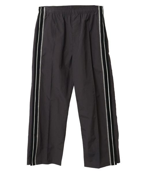 サイドラインナイロントラックパンツ ■デザイン サイドの編立リブにシューズのソールラインをデザインに落とし込んだ、CONVERSE TOKYOらしいナイロン素材のトラックパンツ。 ライトグレー・カーキには定番のトリコライン、チャコールグレー・ブラックにはさりげないラメ素材がポイントのブラックラインでアクセントを付けたデザイン。 裾のスリットによりブーツカットのような柔らかな広がりを作り、ルーズながらもすっきり見えるシルエットを実現。 ウエストはゴム仕様でノンストレスな履き心地を確保し、動きやすさと日常の快適さを両立。 ユニセックスで着用可能なS・Mの2サイズ展開も魅力。 【サイズ表記】2=Sサイズ 3=Mサイズ ■素材 耐久性・防風性に優れたナイロングログラン素材を使用。 さらりとした肌触りで軽量ながらしっかりとした生地感があり、デイリーからアクティブシーンまで幅広く対応。 ■コーディネート スポーティな素材ながらも、シャツやジャケットなどきれいめアイテムとも好相性。 ローファーやシャツを合わせた“大人カジュアル”スタイルから、スニーカーでまとめたストリート寄りのスタイリングにも活躍。 同シリーズのジャケット(A2853FJM350)とセットアップで着こなせば、トレンド感のあるスタイルに。 ------------------------------------- 透け感:なし 裏地:あり 伸縮性:なし 光沢感:なし 生地の厚さ:普通 ------------------------------------- ※商品画像は撮影時の光や角度により、実物の色味と異なって見える場合がございます。