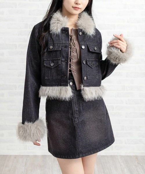 Y2K感漂うショート丈アウター!デニムファージャケット(セット可)【デザイン】ショート丈のデニムジャケットに、襟・袖口・裾にたっぷりのファーをあしらった存在感抜群のアウターです。デニム特有のカジュアルさにファーの華やかさが加わり、甘辛バランスを楽しめる1枚。コンパクトな丈感なので、スタイルアップ効果も期待できます!【素材感】ハリがあり型崩れしにくいデニム生地伸縮性:なし/ 透け感:なし/ 裏地:なし 水洗いによる洗濯不可 / ドライ・ウェットクリーニング不可【コーディネート】セットアイテムのスカート(商品番号:203A1-133792/デニムミニスカート(セット可))と合わせて着ていただくのがおすすめです!トップスはコンパクトなリブニットやクロップド丈Tシャツを合わせてボトムはローライズデニムやカーゴパンツでストリート感をプラスした着方も◎【※お取り扱い上のご注意】1:モニター環境等により実際の商品と多少色味が異なって表示される場合がございます。予めご了承下さい。2:屋外で撮影された商品は、天候により多少実際のカラーと異なる場合があります。商品のカラーはトルソー(マネキン)の商品画像をご参照ください。3:濃い色の商品は、お洗濯や摩擦等による移染にご注意ください。4:末永くご愛用頂く為に、アテンションタグ・洗濯ネームを必ずご確認の上、着用又はお取り扱い下さい。5:生産時期により、色、サイズ、デザイン、素材の質感が多少が異なる場合がございます。あらかじめ御了承下さいませ。