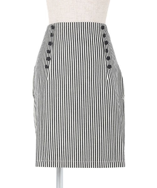 カジュアルライクな着こなしが楽しめるタイトスカートが登場♪ 縦に並んだくるみ釦がきちんと感とクラシカル要素をプラスしています。 バックはレースアップになっており、後ろ姿がグッとガーリーな印象に♡ しっかりした生地とスリット入りで動きやすさも抜群です◎ MATERIAL:表地 REDxWHITE COTTON60%POLYESTER25%RAYON15% BLACK COTTON66%POLYESTER23%RAYON10%POLYURETHANE1% 裏地 POLYESTER100% made in China サイズフリー ウエスト73〜64cm ヒップ96cm 脇丈52cm