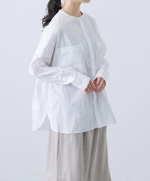 胸元のポケットがさり気ない存在感を放つデザインロングシーズン着やすい綿素材で、羽織としても活躍するシャツをご用意しました。ワイドシルエットとコンパクトな首元が抜け感を演出。身幅はたっぷりとしていますが大きくは見えず、上半身のラインを拾わない絶妙なバランスに仕上げました。ボタンが見えない比翼仕様とヨークの無いすっきりとしたデザインがミニマムな雰囲気です。日常にもお仕事にもシーンを問わず着まわせるおすすめの1枚。季節が進めばベストやカーディガンを重ねたり、インナーにタートルネックを合わせるスタイリングも素敵ですよ。【FABRIC】・コットン100%のさらりとした手触り・これからのシーズンに寄り添うちょうどいい肉感【POINT】・ストレートシルエットのスカートとも好相性・春先まで長く着られるアイテム【2025 Autumn/Winter】【25AW】※商品画像は、光の当たり具合やパソコンなどの閲覧環境により、実際の色味と異なって見える場合がございます。予めご了承ください。※商品の色味の目安は、商品単体の画像をご参照ください。▼お気に入り登録のおすすめ▼お気に入り登録商品は、マイページにて現在の価格情報や在庫状況の確認が可能です。お買い物リストの管理に是非ご利用下さい。素材感透け感 : ややあり(OFF)伸縮性 : なし裏地 : なし光沢 : なしポケット : ありBLUE:162cm(FREE) / 161cm(FREE)OFF:162cm(FREE)FREE