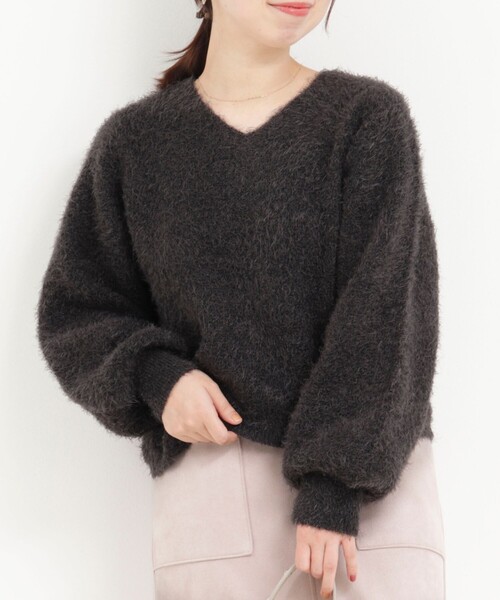 ◇25AW◇MICO COULIERふわふわな表面感で着映えするリュクスなシャギーニット◆Point・人気ニットのロングスリーブバージョン・クルーネックとVネックどちらを前にしても着られる、前後2WAYデザイン・毛足のある素材がやわらかで女性らしい雰囲気・触れたくなるようなふんわりした質感で、季節感のある華やかさを演出・ぽわんと膨らむ袖で、可愛らしさをプラス・襟元はリブ編みではなく編み出しにすることで、カジュアルさがなく綺麗な印象・流行に左右されないデザインなので、定番として長く愛用いただけます・ダブルフェイス(接結)編みにすることで、裏側には長い毛が出ることなくフラットで滑らかな質感・ほどよく厚みのある上品な肉感、INせずにスタイルが決まる長すぎない丈感・スカートあわせでフェミニンに、ハンサムなパンツやデニムとあわせれば、ほどよい甘さのあるこなれた大人の雰囲気に・シンプルなので合わせるものを選ばず着こなせるのに、存在感のある1枚・手洗い可能で、この秋冬のメイントップスとして活躍すること間違いなしのアイテム----------------------------------------------------------透け感:なし裏地:なし伸縮性:あり光沢感:若干あり洗濯:手洗い可----------------------------------------------------------気になる商品は、お気に入り登録がオススメです!クーポン情報、入荷情報が通知されるようになります----------------------------------------------------------●お取扱い上のご注意● 末永くご愛用頂くために、アテンションタグを必ずご確認の上、着用又はお取り扱い下さい。※店頭及び屋外での撮影画像は、光の当たり具合で色味が違って見える場合があります。商品の色味は、スタジオ撮影の画像をご参照下さい。※商品画像に関しては出来る限り忠実に表示出来るよう努めておりますが、お客様がご利用のモニターの設定及び特性により、実際の商品と比較し色味に若干の誤差が生じる場合があります。※製品洗い加工の商品は、多少の歪み、シワなどが見られたり、風合いやサイズ等が1枚1枚異なります。汗や雨等で濡れた時や、摩擦により色落ちし、他の衣料を汚すことがありますので(特に濃色のもの)ご注意ください。