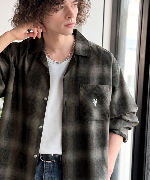 「雰囲気高まる。」ヴィンテージ風チェック柄オープンカラーシャツ(長袖)/Vintage-style check pattern open collar shirt