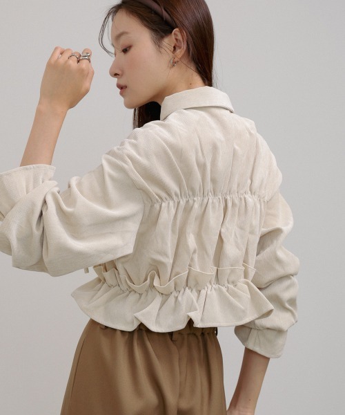 ●Bab●■POINTコーデュロイ生地のブラウスが登場!胸元部分のシャーリングと小ぶりリボンがついたトレンドライクなブラウスになっています。袖部分は手元がふわっと広がるようになっていてフェミニンさがプラスされたデザインになっています。デニムと合わせたりスラックスと合わせたりと合わせ方が様々なので、オンオフ問わずにお使いいただける万能ブラウスです。■FABRICシャーリング部分はゴムが入っていて伸縮性がしっかりとあるブラウスになっています。■COORDINATEフレアパンツやワイドパンツと合わせると大人カジュアルなスタイリングになります。Iラインスカートやスラックスと合わせてオフィスカジュアルなコーディングも◎…………………透け感:なし裏地:なし…………………※撮影環境により、多少実際のカラーと異なる場合がございます。また、携帯やスマートフォン、パソコンなどの画面上と実物では多少色が異なって見える場合がございます。ご了承下さいませ。※画像の商品はサンプルのため、実際の商品と若干仕様が異なる場合がございます。※濃色品は、過度な摩擦や濡れた状態での摩擦により、色落ち・色移りをする恐れがあります。※この商品は、素材の特性上、洗濯の際に多少の縮みが生じる恐れがあります。洗濯後は形を整えてから干してください。※その他お取り扱いに関しましては、商品に付属のアテンションタグをご覧ください。★商品のお気に入り登録再入荷やラスト1点のお知らせ、セール情報などお知らせを受け取ることができます!★ブランドのお気に入り登録新商品や再入荷などのお得な情報を受け取ることができますので、是非ご登録ください。★Bab公式Instagramアカウント【bab.showroom】で最新情報をチェック!