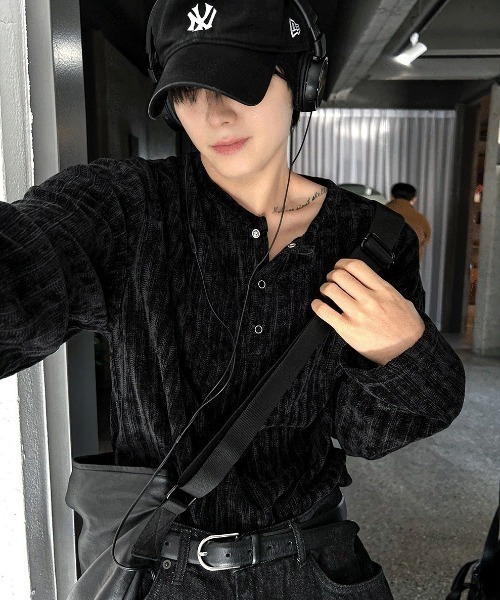 ▼Item Point- ヘンリーネック- スリムフィット- スタンダードシルエット- ベルベット調素材- ほのかな光沢感- ミディアム丈▼Item Infomation裏地:なし厚さ:普通伸縮性:あり季節:春 秋 冬透け感:なし※±1~3cmの誤差が出る場合がございます。▼Washing Tip- 単独手洗い、中性洗剤使用、ぬるま湯洗濯またはドライクリーニング。- 水洗い可能ですが、高温に弱いため煮洗いや高温アイロンは避けてください。- 洗濯時に色落ちや生地の変形が生じる場合があります。- 漂白剤、乾燥機のご使用はお避けください。COSYHARU | コシハル#ストリート#デイリー#カジュアル#ジェンダーレスCOSYHARUは、韓国の人気インフルエンサーが手がけるストリート系ユニセックスブランド。シンプルで合わせやすいデザインをベースに、程よくエッジを効かせたアイテムが魅力。Instagramフォロワー11万人超の影響力を持ち、20代を中心に高い支持を集めている。