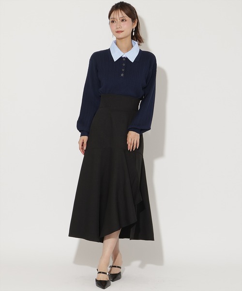 スタイルアップを叶えるマーメイドスカート【Design/Styling】・女性らしいシルエットを引き立てる、インナーミニ付きマーメイドスカート。・ハイウエストデザインで腰回りをすっきりと見せ、脚長効果も抜群です。・ウエストバックはゴム&レースアップ仕様でサイズ感の調整が可能◎・フロントに動きのあるアシンメトリーヘムを取り入れることで、歩くたびに揺れる裾がエレガントさをプラス。・S、Mの2サイズ展開の左ファスナー仕様。【Fabric】・しなやかで伸縮性のある素材を使用。・細かな柄が上品なニュアンスを演出します。・シワになりにくくデイリーに取り入れやすいのも魅力。・裏地付きで安心感があり、快適な着心地を叶えてくれます。・ブラウンチェック、ブラックチェック、ブラックの3色展開となります。【Care】ドライクリーニングS:(01):着丈89cm ウエスト64cm ヒップ94cmM:(02):着丈91cm ウエスト67cm ヒップ97cm