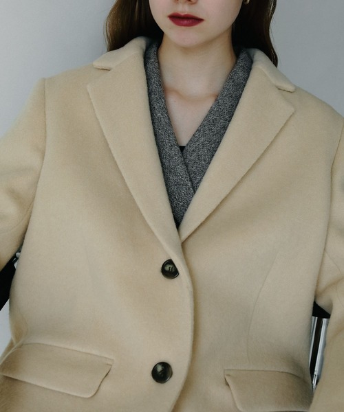 ーーースーパー140ウールブレンドの高級感ある素材で仕立てた、大人の上質ウールジャケットーーー【デザインと特徴】インポートのような雰囲気を持つ、おしゃれで大人にとってもおすすめのウールジャケットができました。A part byのいつものアウターに比べてコンパクトですっきり見えるシルエットと、スーパー140ウールブレンドの高級感のある素材がマッチしています。テーラードジャケットのクラシックな雰囲気を併せ持った上品なデザインは、カジュアルアイテムを格上げしてくれそうです。一枚羽織るだけで洗練された雰囲気に。ぜひワードローブに加えたい1着となっています。とても軽い着心地ですが、重厚感・高級感のあるジャケットです。【素材特徴】スーパー140ウール生地を生産する際に出る生地端と、その他の糸などを反毛しブレンドした原料です。再生ウールの中でも高品質でサステナブルな素材です。二重織構造とシャルム加工により、非常に柔らかく上品な風合いが特徴。微起毛のタッチが、なめらかでぬくもりある表情を演出してくれます。しっとりとした肌触りと、品格漂う表面感が魅力で、贅沢にウール90%を使用し、軽さもありつつ重厚感もある厚みとハリを持たせています。★スーパー140ウールスーパー140ウールとは、ウールの糸の細さを示す指標。数字が大きいほど細く繊細な糸となり、高品質の証となります。スーパー140は糸の番手がかなり細く、そのウールを使用した生地はなめらかで上質といわれています。【お手入れ方法】ドライクリーニング推奨【スタイリング】ジャケット感覚で羽織っていただけます。今シーズンは、フリルハイネックブラウスやボウタイブラウスなどクラシカルなアイテムと合わせるのもおすすめです。コンパクトなシルエットなので、タイトスカートできれいめに、ワイドパンツでマニッシュに着ていただくのも素敵です。【洗濯可否】ドライクリーニング推奨です。ーーーーーーーーーーーーーーーーーーーーーーーーーーーーーーーーー《インフォメーション》◆商品のお気に入り登録♡をクリックで気になるアイテムをお気に入り登録していただくと、以下の通知を受け取ることができます。・入荷・再入荷・ラスト一点・セール対象時◆ブランドのお気に入り登録新商品や再入荷、セール、クーポン配布などのお得な情報を受け取ることができますので、是非ご登録ください♪公式Instagram >>> 【@apartbylowrys 】おすすめアイテムや新作情報、" ショップニュース "を更新中!ぜひフォローしてみてくださいね^^