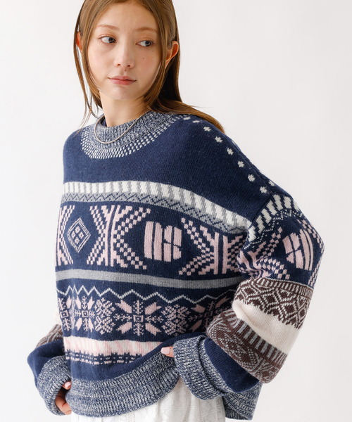 25AWデビューの日本ブランド。フェアアイルという伝統的な編み柄に、nap独自の視点でほんの少しの遊びを加えたパターンニット。身頃に施された幾何学模様は一見クラシックでありながら、実はnapのロゴが紛れ込むように組み込まれており柄の中にストーリーが隠されています。ナチュラルになりがちなフェアアイルニットですが、napのエッセンスでモダンな一着に仕上がっています。あえて長めに設定した袖は、折り返したりくしゅっとさせたり、手元にボリューム感が演出できて可愛いです。【注意事項】※商品画像は、光の当たり具合やパソコンなどの閲覧環境により、実際の色味と異なって見える場合がございます。あらかじめご了承ください。※画像の商品はサンプルです。実際の商品と仕様、加工が若干異なる場合があります。【nap / ナップ】ブランド名の「nap」は、うたた寝を意味する言葉。どこかヨーロッパ的な感性や、静かなフェミニズムの香りをまといながら現代の空気感と自然に混ざり合う世界観を構築している。トレンドや売れ筋に過度に左右されず、毎シーズン「何を届けたいのか」という問いを軸に、空気ごと提案するようなコレクションを構成。その時々のムードを反映した素材選びやディティールを通して、着る人の気分や日常に寄り添うスタイルを提案しています。napは、完璧に整いすぎないことや、少しの不器用ささえも美意識の一部として受けとめる。単なる洋服の羅列ではなく、"美しさのペース”を自分で選ぶことができる、自由で静かな感覚をまとえるブランドである。