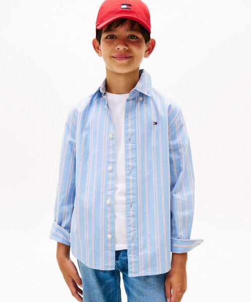 BOYS ストライプネップファブリックボタンダウンシャツ 爽やかなカラーリングのストライプ柄生地で仕立てた、上質なコットンのボタンダウンシャツ。流行を問わず長く着られるタイムレスなデザインで、クラシカルなプレッピースタイルが完成します。普段のデニムやスエットパンツと合わせるだけで様になるトップスです。 【サイズ】 90:着丈41.0cm 身幅31.0cm 肩幅28.0cm 袖丈32.0cm 100:着丈48.0cm 身幅34.0cm 肩幅32.0cm 袖丈35.5cm 110:着丈50.0cm 身幅37.0cm 肩幅34.0cm 袖丈38.0cm 120:着丈54.5cm 身幅40.0cm 肩幅36.0cm 袖丈44.0cm 130:着丈57.0cm 身幅42.0cm 肩幅37.0cm 袖丈46.0cm 140:着丈61.0cm 身幅46.0cm 肩幅40.0cm 袖丈50.0cm 150:着丈64.0cm 身幅48.0cm 肩幅43.0cm 袖丈55.0cm 160:着丈68.0cm 身幅51.0cm 肩幅45.0cm 袖丈57.0cm 【TOMMY HILFIGER】 永遠のアメリカンクラシックをベースにモダンなひねりを加えたデザインが人気のトミーヒルフィガー。都会的で洗練されたメンズ・ウィメンズに加え、チルドレン、ゴルフライン、そしてよりカジュアルなデニムラインと豊富なカテゴリーが揃うグローバルブランド。