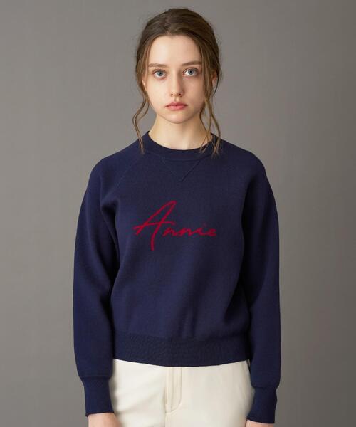 【ロゴが映える、こなれ感満載のAnnieジャカードニット】 ●程よいふくらみがあり、だれにくい安定した編み地を使用 ●軽くて暖かくチクチクしにくい素材 ●「Annie」のオリジナルロゴデザインがアクセント 【こだわり】 ダブルジャカードで立体的に編み立てた、大人のためのロゴニットプルオーバー。 プリントでは出せない、編み地ならではのふっくらとした質感と奥行きのある表情が魅力です。 だれにくく、程よくハリのある編み地で、きれいなシルエットをキープ。 スウェットのような感覚で着ていただけます。 オーバー過ぎないサイズ感で、コートにインしてもかさばらず、ボトムスも選ばないので着回し力が高い一枚。 シンプルながらも存在感のある一枚です。 【素材】 しっかりと目の詰まったダブルジャカード編みで、ふっくらとしながらも軽やかな着心地です。 軽くて暖かくチクチクしにくい素材で、肌触りの良い風合いが特徴です。 ※照明の関係により、実際よりも色味が違って見える場合があります。また、パソコン・スマートフォンなどの環境により、若干製品と画像のカラーが異なる場合もございます。 店舗へのお問い合わせ商品番号:085-14005 ●製品寸法: 34(SS):着丈48cm B92cm 袖丈63cm 36(S):着丈50cm B94cm 袖丈64cm 38(M):着丈52cm B98cm 袖丈65cm 40(L):着丈54cm B100cm 袖丈66cm 備考: