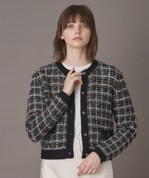 【オリジナル配色のツイード編地で着映えるツイードニットカーディガン】 ●多本どりの糸で組んだオリジナル配色ツイード ●ボタンがクラシカルなアクセント ●これ一枚で着映える 【こだわり】 多本どりした色違いの糸でオリジナルの配色を組んだ、特別感のあるツイードニットカーディガン。 表情豊かなツイード編地に、フロントとポケットにはクラシカルなゴールドボタンをあしらい、上品さと華やかさを両立しました。 すっきりとしたクルーネックデザインで、デニムやスラックスはもちろん、シンプルなワンピースの羽織りにもおすすめ。 釦をすべて留めてトップス感覚としても使える為、コートの中に忍ばせても脱いだ瞬間華やかさが目立つデザイン。 シンプルなスタイリングでも着映えを叶える、大人のための主役カーディガンです。 【素材】 表面感のあるツイード見えの編み地。 多本どりの色糸をミックスして、奥行きと華やぎを演出したオリジナルの配色です。 ニットならではの軽やかさと、布帛ツイードのような上品感を両立し、シーズンの変わり目や秋冬のレイヤードにも活躍する1着です。 ※照明の関係により、実際よりも色味が違って見える場合があります。また、パソコン・スマートフォンなどの環境により、若干製品と画像のカラーが異なる場合もございます。 店舗へのお問い合わせ商品番号:085-34009 ●製品寸法: 34(SS):着丈48cm B90cm 袖丈51cm 肩幅35cm 36(S):着丈49cm B92cm 袖丈52cm 肩幅36cm 38(M):着丈51cm B96cm 袖丈54cm 肩幅38cm 備考: