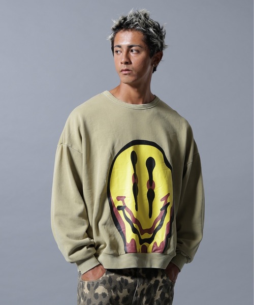 DankeSchon大胆なスマイルグラフィックが視線を惹きつける、Dankeschönらしい1枚。ピグメント加工による絶妙なフェード感とボディカラーの相性も抜群でポップさと毒気を共存させた唯一無二のグラフィックはインパクトがありながらもどこかファッショナブルな仕上がり。コットン100%の柔らかな裏毛素材にワイドな身幅とドロップショルダーでユニセックスでの着用も可能です。■POINT・インパクト抜群のグラフィックプリント・ピグメント染めによるヴィンテージライクな風合い・コットン100%の裏毛スウェット素材で着心地◎・ゆったりとしたオーバーシルエットでトレンド感あり・Dankeschönの世界観を象徴する遊び心あるデザイン■STYLE TIP・デニムパンツと合わせて王道ストリートスタイルに🧢・インナーにシャツを仕込んでレイヤードコーデもおすすめ・ワイドカーゴパンツと合わせればより無骨な印象に・ショーツ×ハイソックスでY2Kライクな着こなしも◎・存在感があるのでシンプルなボトムと好相性🖤「可愛い」だけで終わらせないDankeschönらしいダークなユーモア。定番スウェットの新たな可能性を感じさせる、シーズンを象徴するアイテムです。コーデの主役として、今季のスタイリングにぜひ取り入れてみてください。DankeSchon・・・DankeSchonとは、このブランドの核となるキーワードD digitaliyデジタル式A Architect創造者N neologism新表現K kittenish悪ふざけE engrossing心を奪うの頭文字を組み合わせたものにドイツ語のSchonを付け、ブランドの意図に賛同してくれる人達に感謝の意味を込め、「DankeSchon(ありがとうの意味)」としている。ファッションのテーマは「ニュースタンダード」。時代に抗うのではなく、すり抜け受け流すことでブランドに見合う要素を抽出し、高品質な素材と、デジタライズなグラフィックを掛け合わせコレクションに落としていく。純粋なシルエット、ディテールへの徹底したこだわりと同時に、ユニークで新しい見解も積極的に取り入れる。そこから生み出された製品は、実用的でごく自然に日常に馴染むもの。
