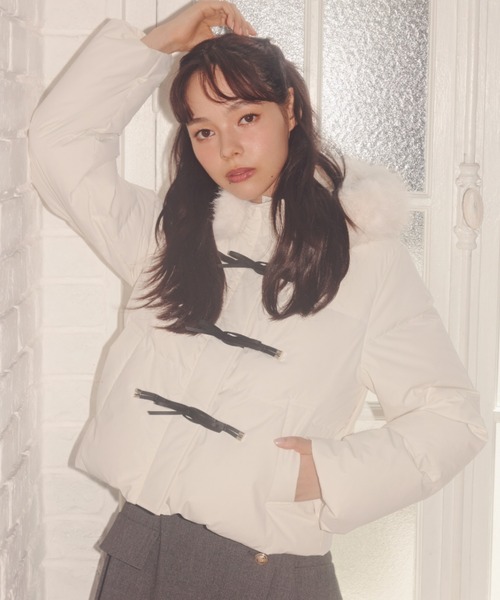 今シーズン人気No.1のアウターが再入荷!リボンディティールがキャッチーなショートダウンソフトな表面感のピーチタフタを使用しダウンフェザーの暖かさはキープしながら、着ぶくれしないボリューム感に仕上げました。 ダッフルのようなリボンデザインがコーディネートの主役となりカジュアルになりすぎず女性らしく着こなせる一着です。 フード回りにはフェイクファーをあしらい顔回りを華やかにみせます。ショート丈なのでボトムで着こなしの幅が広がります。 ※撮影時照明の関係により、色味が違って見える場合がございます。またパソコン・スマートフォンなどの環境により、若干製品と画像のカラーが異なる場合もございます。予めご了承ください。商品の色味は、商品単品画像をご参照下さい。※商品画像はサンプルのため、色味やサイズ等の仕様に変更がある場合がございますので、予めご了承ください。◆お買い物をよりお楽しみいただくために◆・「商品のお気に入り登録」で完売カラーの再入荷やラスト1点、セール通知を受け取ることができます。・「ブランドのお気に入り登録」で新商品の入荷情報など、いち早く受け取ることができます。