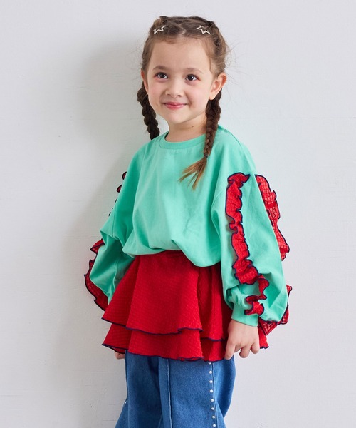 チェックフリルが目を引く ガーリーロンティー♪ ■デザイン 肩部分の両サイドに広がったふんわりフリルが印象的。 チェックデザインとメロー配色もたまりません♪ デイリーユースでもお出かけにも着回しやすいガーリーなロンティーです♪ ■スタイリング フレアーパンツや、チェックスカートなど、ガーリーなボトムスとの相性◎ 首元からハイネックを覗かせてレイヤードも楽しめます。 ■生地感 柔らかい肌触りの綿100%素材 夏は涼しく冬は暖かい 丈夫で型崩れしにくいので、普段使いしやすい ++++++++++++++++++++++++ 透け感:少しあり 伸縮:あり 厚み:普通 ++++++++++++++++++++++++ ※ネームタグ付き ■同柄・リンクコーデアイテム おとなサイズ ・ショルダーチェックフリルロンティー:0040352007 キッズサイズ ・チェックフリルレイヤードスカート:0040852007 ※モデルが着用している画像は、照明や日光などの撮影時の環境により実物と異なる色味になる場合がございます。 商品単体の平置き画像を実物に近いお色味になるよう努めておりますので、お色味のご確認は平置き画像をご参照くださいませ。 ※お使いのモニター環境によっても実物のお色味と異なって見える場合がございます。予めご理解の程よろしくお願いいたします。 ハートマークをポチッ! 気になる商品はお気に入り登録をお忘れなく! 商品のお気に入り登録をすると... [再入荷][残り1点][セール情報]を受け取れます。 MARKEY'Sをお気に入り登録すると... [新商品][再入荷]の情報をいち早く受け取れます。