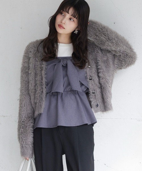 毎シーズンVISで人気の愛されニットカーディガン。着膨れしづらく、チクチクしないあったかニットは冬のヘビロテアイテムに。【2025 Autumn/Winter】【25AW】 <POINT> ・モフモフとした毛足が癒しにもなるニットカーディガン ・毛羽立ちや毛玉になりにくいアンチピリング素材 ・ショート丈でスタイルアップも嬉しいポイント。 【デザイン・シルエット】 今シーズンでは、抜け感が出るようにVネックのデザインで展開! カーディガンとしてはもちろんですが、釦を全部閉めてセーターのように一枚着としても着用出来るので、ヘビーローテーション間違い無しです。 【素材】 毛足の長いフェザーヤーンを使用しています。 グレー系(09)オフホワイト(15)サックス(48):ラメ糸が織り込まれています。 毛羽立ちや毛玉が出来にくいアンチピリング素材。手洗い可能。 【カラー】 今シーズンでは、チャコール、グレー系(ミックスライトグレー)、定番のオフホワイト、サックス(ラベンダーサックス)、ピンクの5色展開です。 【おすすめのスタイリング】 ボトムはワイドパンツ、マーメイドスカートなどがベスト。 特に、新色のラベンダーサックスのカーデ×ベージュやキャメル、ブラウン系のボトムでトレンド感のあるカラーコーディネートがおすすめです。 ----------------------------- 裏地:なし 光沢感:ややあり 透け感:なし 伸縮性:あり ポケット:なし ボタン:あり(開閉可) 生地の厚さ:やや厚手 季節:春、秋、冬 ----------------------------- 【モデル着用サイズ】 チャコール(06),ピンク(63),オフホワイト(15):身長:161cm 着用サイズ:F サックス(48),グレー系(09):身長:164cm 着用サイズ:F ※画像の商品はサンプルです。 実際の商品と仕様、加工、サイズが若干異なる場合がございます。 ※画像によっては実際の色味と異なる場合があります。正しい色味は生地アップ画像をご確認ください。