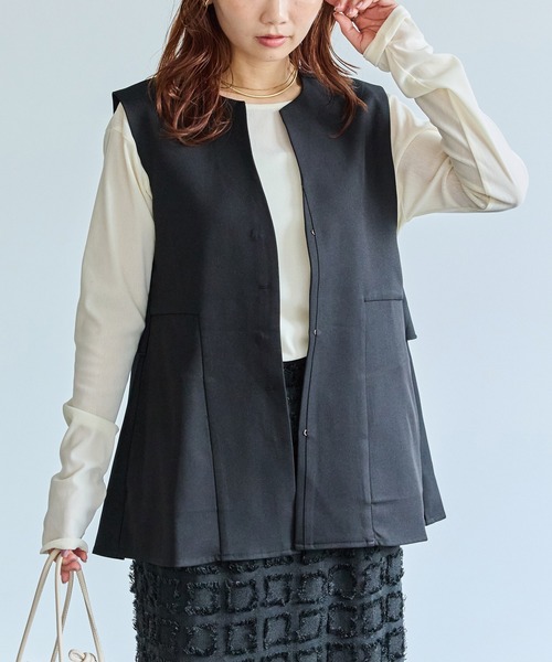 LAVEANGEの好機能シリーズ「より快適に過ごせる服。」さまざまな機能を併せ持った高機能素材によって、お洒落なだけでなく、より快適に過ごしていただける服を作りたいという想いから生まれたLAVEANGEの好機能シリーズ。■デザイン背中に施されたフリルが印象的なベスト。前は隠しホックでシンプルで上品に、後ろにはフリルで軽やかさをプラス。ベージュカラーは、黒の配色メローデザインがアクセントになっています。■素材◎抗菌・防臭 防シワ 機能付き抗菌・防臭・防シワ機能付きで、いつでも清潔で快適に着用可能。シワになりにくく、お手入れも簡単なのが嬉しいポイント。■コーディネートブラウスやワンピースの上に重ねるだけで旬なレイヤードスタイルに。同素材のパンツを合わせて、セットアップスタイルも楽しめます。季節に合わせてインナーを変えれば、長く活躍するアイテムです。■セットアップ対応センターシームワイドパンツ 品番:5755051■同素材 ワンピースフレアジャンスカワンピース 品番5755052・サイドポケット付き・バックフリル/配色/メロウ・お手入れ方法:洗濯機可・マルチサイズ/大きいサイズ対応(M/LL/3L/4L/5L)---------------------------------------透け感:なし裏地:なし伸縮性:なし生地の厚さ:普通---------------------------------------【お買いものをよりお楽しみいただく為に♪】▼商品のお気に入り登録(ハートマークをクリック)お気に入りアイテムの再入荷やセールの通知も受け取ることができます。▼ブランドのお気に入り登録新商品やクーポン配布などのお得な情報を受け取ることができます。■商品注意事項■※商品画像は、光の当たり具合やパソコンなどの閲覧環境により、実際の色味と異なって見える場合がございます。予めご了承ください。※末永く愛用頂く為に、アテンションタグ・洗濯ネームを必ずご確認の上、着用又はお取り扱い下さい。※生産時期により色味が多少異なる場合がございます。予めご了承ください。※機能は、永久的なものではありません。着用や洗濯を繰り返すことによって、徐々に効果が低下しますので予めご了承ください。