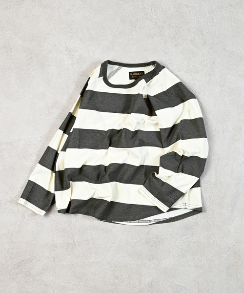 シルエットがいい! ■デザイン ボーイズライクな太ボーダーとチェックがコーデの主役になります。 肩がごわつかないラグランスリーブ。 ラフ感漂うゆったりシルエットです。 裾はラウンドカットになっているので、後ろ姿もカワイイ。 どの配色もカワイイ4色展開です♪ ■スタイリング 1枚あるととっても重宝するボーダーアイテム。 ラグランスリーブなので、ゆったりシルエットコーデがオススメ。 レイヤードして裾をチラ見せも◎ ■生地感 柔らかい肌触りの綿100%素材。 夏は涼しく冬は暖かい万能生地。 丈夫で型崩れしにくいので、普段使いしやすいです。 ++++++++++++++++++++++++ 透け感:少しあり 伸縮:少しあり 厚み:普通 ++++++++++++++++++++++++ ※80~95cm のみ肩ボタン付き ※ネームタグ付き ■リンクコーデアイテム おとなサイズ ・ソウガララグランロンティー:0000352062・ソウガラ9ブタケパンツ:0000152021 キッズサイズ ・ソウガラ9ブタケパンツ:0000152020 ※モデルが着用している画像は、照明や日光などの撮影時の環境により実物と異なる色味になる場合がございます。 商品単体の平置き画像を実物に近いお色味になるよう努めておりますので、お色味のご確認は平置き画像をご参照くださいませ。 ※お使いのモニター環境によっても実物のお色味と異なって見える場合がございます。予めご理解の程よろしくお願いいたします。 ハートマークをポチッ! 気になる商品はお気に入り登録をお忘れなく! 商品のお気に入り登録をすると... [再入荷][残り1点][セール情報]を受け取れます。 MARKEY'Sをお気に入り登録すると... [新商品][再入荷]の情報をいち早く受け取れます。