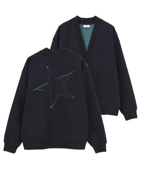 バックスターパッチ インディゴ スウェットカーディガン ■デザイン 背面に大きな星のパッチワークを施したインディゴスウェットカーディガン。 裏糸にカラー糸を使用し、さりげなく個性が光るユニークなアイテム。 背面のデザイン以外をあえてシンプルにした、CONVERSE TOKYOらしい大胆な一枚。 ユニセックスで着用いただける2サイズ展開で、ほどよくゆとりのあるサイズ感がポイント。 【サイズ表記】2=Sサイズ 3=Mサイズ ■素材 インディゴ染料で染めたデニムの風合いを持つ裏毛素材。 ほどよく伸縮性があり着心地が良く、ロングシーズン着用可能◎ ■コーディネート カーゴパンツなどカジュアル合わせはもちろん、スラックスやローファーなどできれいめにまとめても◎ 季節の変わり目の軽羽織としても活躍すること間違いなし。 ------------------------------------- 透け感:なし 裏地:なし 伸縮性:あり 光沢感:なし 生地の厚さ:やや厚地 ------------------------------------- ※商品画像は撮影時の光や角度により、実物の色味と異なって見える場合がございます。 ※取り扱い方法について ・商品の加工により部分的に若干の色むら、色違いが生じることがあります。 ・洗濯の際、漂白剤のご使用はお避け下さい。 ・長時間ぬれたままにしておくと移染しやすいので他の物と別々に洗い、すすぎを十分にしてください。 ・濡れたまま重ねたり丸めたりすると色移り、色落ちすることがありますので洗濯後は形を整えて直ちに干してください。 ・タンブラー乾燥機のご使用はお避け下さい。