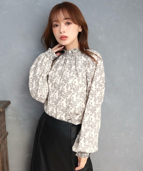 エレガンスかつフェミニンな印象の総柄ブラウス。一枚での着用はもちろん、スタンドカラーデザインなのでジャケットやベストなどとのレイヤードスタイルも楽しめます。肌触りがよく程よくゆとりがあるサイズ感で落ち感のある生地なので、着用するだけで着痩せ効果もありきれいなシルエットのアイテムです。