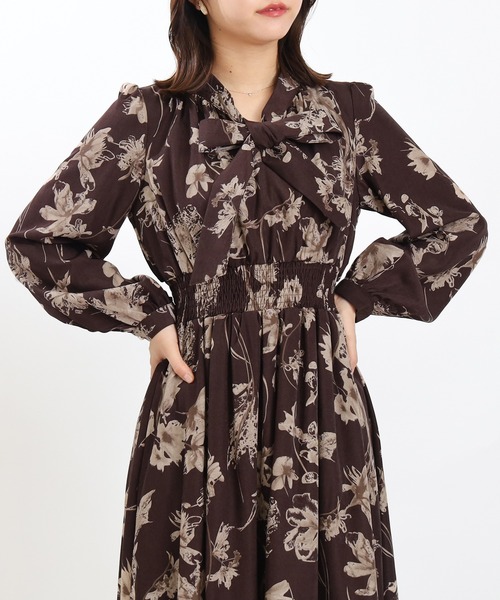 【今季はレトロフラワーで旬な着こなしを】ODIERから大人フェミニンな花柄ワンピースがリリース。さらりとした落ち感のある生地を使用し、ロングシーズンで快適に着用が可能○ポイントのリボンタイがフェミニンさをプラスし、コーデを華やかな印象に仕上げます♪高めの位置に設定されたシャーリングデザインがスタイルアップを実現◎程よくウエストにフィットし、女性らしいメリハリのあるシルエットを作ります。コートやジャケット、カーディガンなどのアウターと合わせるとシーズンレスで使える優秀アイテムです♪(カラー表記について)ワイン→オフホワイト地×ワイン花柄ブラウン→ブラウン地×モカ花柄【ASTORIA ODIER(アストリア オディール)】「女性の”はたらく”が、もっと楽しくなる服」なりたい自分を叶えるために毎日を大切にしている女性の気持ちに寄り添い、はたらく日も休みの日も、手に入れられる憧れをお客さまと一緒につくっていく。自分のキレイがみつかるフェミニンカジュアルスタイルを提案します。◆《お気に入り登録》でお得な情報を◆・「商品のお気に入り登録」再入荷、ラスト1点、セール情報などの通知も受け取ることができます。・「ブランドのお気に入り登録」新商品や再入荷など、ブランドのお得な情報を受け取ることができます。