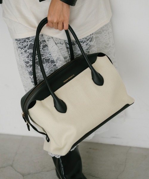 ■デザインポイント・キャンバス生地のボストンバッグバッグ ・内ポケット付き ・マチ幅がしっかりとあり普段使いはもちろん、お仕事バッグなど多方面に活躍 ・A4サイズ、PC、500mlペットボトル収納可能 ・合皮素材のハンドルで、本体はしっかりと型崩れしにくい仕立て ■カラー展開 ブラック ブラウン ■サイズ展開 フリー ■THEATRE PRODUCTS(シアタープロダクツ) 「洋服があれば世界は劇場になる」をコンセプトに2001年設立。エレガントで女性らしいウエアと、ユーモアとウィットに富んだアクセサリーなどをとおして、ファッションブランドにおきるすべての出来事を舞台にあげてスポットライトを当てる。 デザイナーを武内昭と森田美和が務める。