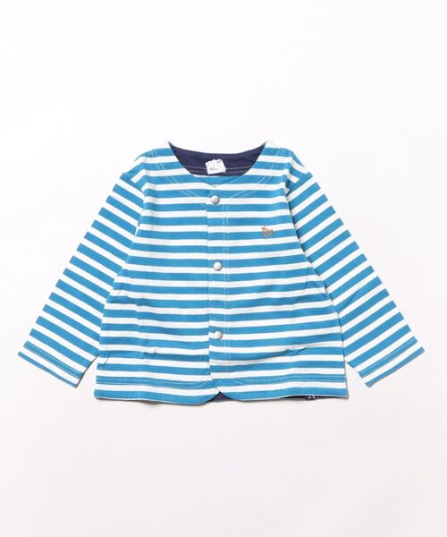 天竺素材のカーディガン。ちょっとした羽織としても役立ちます。Tシャツの上からはもちろん、カバーオールなどの上からもおすすめです。