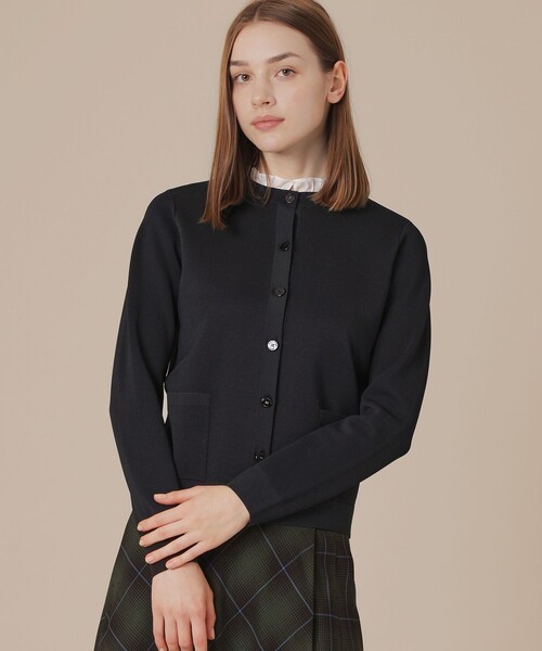 【ウォッシャブル】【着用推奨シーズン:春・秋・冬】 <素材説明> アセテートとナイロンの交撚糸を使用し、微光沢のある表面感としなやかな風合いが上品な印象の素材です。 <デザインポイント> 衿に布帛のフリルを施したカーディガンジャケットです。エレガントな印象で、衿のフリルは外しても着用でき、コーディネートの汎用性高いアイテムです。衿のカラーはブラック(#09):白衿、ベージュ(#40):ベージュ×白ストライプとなります。 ※この商品はサンプルで撮影を行っています。実際の商品とイメージ、仕様等が異なる場合がございますので予めご了承ください。