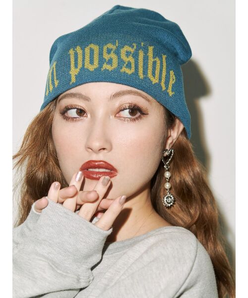 ゆったりとしたサイズ感のニットビーニーです。ブルーはEVRIS(エヴリス)らしい配色のグラフィックで、被るだけでスタイリングのポイントとしてスタイリングを華やかにしてくれます。