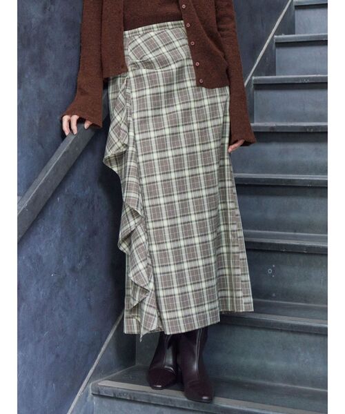 クラシカルな雰囲気を纏うチェック柄スカート■デザインコメント親しみさを感じるタータンチェック素材を採用したデザインスカート。アシンメトリーのラッフルディティールでモダンな雰囲気に仕上げました。すっきりとしたナローシルエットで身体のラインをきれいに見せます。ショート丈のトップスやタイトなトップスでインスタイルがおすすめです。【修正コメント】裾幅3センチ小さくなります。タック方向下にし、腹部が膨らまないようになります。ラッフル位置タック2本目の所まで上げます。■スタイリングポイント・トップスインですっきり見せ、アウトでゆるく合わせるのもおすすめ・ルーズなニットと合わせた大人カジュアルなスタイリングも〇・コートで綺麗めに、ボアアウターでフェミニンに----------------------------------透け感:なし裏地:あり生地の厚さ:薄手洗濯:手洗い可伸縮性:なしポケット:ありジップ:あり----------------------------------【 ZOZOTOWNでお買い物を楽しむ便利機能 】♡商品のお気に入り登録完売カラーの再入荷時、ラスト1点の時、セール開始時にお知らせします。予約アイテムが入荷して通常販売になった時もお知らせしてくれます!その他お得な通知も盛りだくさんです。 ♡ブランドのお気に入り登録新商品や再入荷、セール情報など、いち早くブランドのお得な情報を受け取ることができます。ぜひご活用ください!