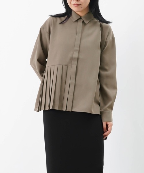 2025 Autumn & Winter 【部分プリーツがポイントのシャツ】 ◆Design 右下の身頃部分にプリーツデザインを施したシャツ。 ベーシックなデザインのシャツにプリーツをデザインすることでコーデにアクセントをプラス◎ 程よい丈感でスカートにもパンツにも合わせやすく、アウトスタイルもサマになります。 前開きの比翼仕立てで、ボタンが見えないためスッキリした印象を与えてくれます。 ◆Fabric ・サラッとした肌触りの微光沢生地 ◆color ・オフホワイト、モカ、チャコールグレーの3色展開です。 ◆Styling ・ナロースカートやテーパードパンツを合わせてオフィスコーデに。 ・きれいめ素材のワイドパンツを合わせて上品に。 ・ボタンを開けてロゴTに羽織って、デニムを合わせてカジュアルスタイルに。 -------------------------------- 生地の厚さ:薄手 透け感:オフホワイトあり 伸縮性:あり 光沢感:あり 裏地:なし 洗濯:ドライクリーニング可 -------------------------------- 【お買い物をよりお楽しみいただくために】 〇商品のお気に入り登録 完売カラーの再入荷や、完売間近の通知、セールの通知を受けることができます。 〇ブランドのお気に入り登録 新商品や再入荷など、いち早くブランドのお得な情報を受け取ることができます。 【♡をクリック!ご登録お願いします!】