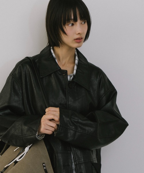 袖口のストライプが効いた、シャツライクなレザージャケット■デザインシャツライクなデザインに、ゆるっとしたオーバーサイズのフェイクレザージャケット袖口裏のストライプを折り返せば、さりげないアクセントにフラップ付きのアウトポケットが実用性とデザイン性を兼ね備えた一枚■素材感程よい光沢と質感のあるフェイクレザーを使用柔らかさもあり着やすく、デイリーに取り入れやすい仕上がり■スタイリングデニムやスラックスに羽織るだけで、スタイリングを一気に格上げシャツ感覚で着られるため、インナーにカットソーやタートルを重ねてカジュアルにもモードにも袖を折り返してストライプを見せれば、抜け感のある大人スタイルに仕上がる一枚---------------------------------透け感:なし裏地:あり伸縮性:なし光沢感:あり生地の厚さ:やや厚手---------------------------------※詳しいお手入れ方法は商品タグをご参照ください。「duei / デュイ」"sensual, mode, daily, mix"しなやかさと自由なニュアンスをセンシュアルな要素をプラスして日常を飾り立てる気分が高まる洗礼された自分らしさを表現できる服を提案します【商品のお気に入り登録】完売カラーの再入荷通知やラスト1点の通知プライスダウンの通知も受け取ることができます。ぜひご登録ください◎【ブランドのお気に入り登録】新商品や再入荷など、ブランドの情報をいち早くお知らせします!ぜひご登録ください◎※ATTENTION※・屋外の光や照明の当たり具合で、実際の商品の色味と カラー別画像の色味に若干の違いが発生する場合がございます。・詳細画像と併せてご確認の上、ご注文いただきますようお願い致します。