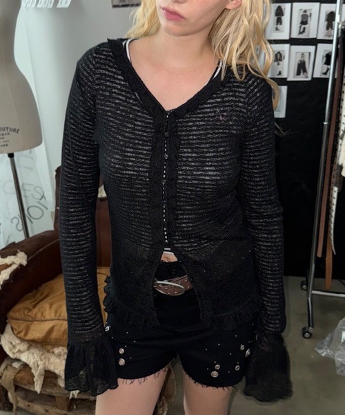【2025 Autumn Winter Collection】◆秋にぴったりなデザイントップス♡▷POINT程よいシアー感のあるニット素材で、中にキャミソールを入れた、軽い羽織としてもお使いいただけます◎裾や胸元にあしらわれた透かし編みフリルが、さりげなくフェミニンさを引き立てます。涼しくなる秋口に重宝する一枚です。▷STYRINGデニム×ウエスタンブーツでトレンド感♡トレンドのマイクロ丈のショートパンツやミディ丈スカートとの相性も抜群です。カラー展開も豊富のため、2色持ちもおすすめです。・・・・・・・・・・・・・・・・・・・・・・透け感:あり裏地:なし伸縮性:なし光沢感:なし生地の厚さ:薄手・・・・・・・・・・・・・・・・・・・・・・▼商品のお気に入り登録お気に入りアイテムの値下げ・再入荷・在庫1点などの通知を受け取ることができます。▼ブランドのお気に入り登録新商品や再入荷、セール、クーポン配布などお得な情報を受け取ることができます。※画像の商品はサンプルです。実際の商品と仕様・加工・サイズが若干異なる場合がございます。予めご了承くださいませ。・洗濯:手洗い可