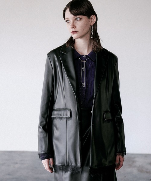 ーーー レースのレイヤードデザインがポイントの 高見えする上品なレザージャケット ーーー point □スムースフェイクレザーとベロアの2素材展開で、異なる表情が楽しめるテーラードジャケット □袖口と裾、ポケットにレースをレイヤードしたデザインがポイント □レースをドッキングすることで、モードすぎず程よく女性らしくエレガントな印象に □バックル無しの同素材のベルト付きで、ウエストマークをしてスタイルアップが可能 □トレンド感のある、甘さとモードのバランスが取れたジャケットで羽織るだけでワンランプアップ◎ styling 骨格ナチュラル:ワイドパンツやデニムのアイテムを選び、カジュアルな雰囲気にするのがおすすめ◎スカーフや存在感のあるバングルなどを取り入れ、更にトレンド感のあるスタイリングに。 骨格ウェーブ:フィット感のあるトップスを選び、タックインしたスタイリングでジャケットのバランスが取れたスタイリングに。ジャケットは付属のベルトでウエストマークすることでスタイルアップ効果抜群◎ 骨格ストレート:タートルネックや襟のあるシャツがピッタリ◎スリムなボトムスを合わせることでメリハリのある大人な印象になりおすすめ。 ※加工を施した画像を使用しております。 実物と色味が異なる可能性があるため、色味は詳細後ろにある生地寄り画像を参考にお願いいたします。 あらかじめご了承下さい。