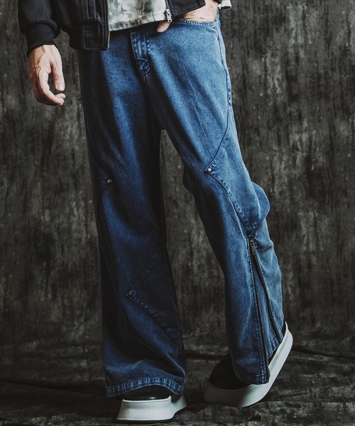 【NO ID.】Side Patch Zip Wide Flare Pants / サイド パッチ ジップ ワイド フレア パンツ