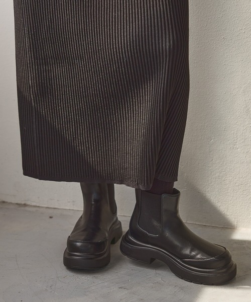 抗菌消臭・撥水加工付きニコアンド定番の万能ブーツが今年も活躍!これからの季節に一足あると重宝するサイドゴアブーツ。【デザイン】シンプルなフォルムに軽量(※当社比)のデザインヒールを組み合わせました。年代問わず履き回ししやすく、トレンドに左右されないアイテムです。ベーシックなブラック(19)とダークブラウン(58)の全2色展開。【機能】足当たりの良い低反発スポンジの中敷き入りで、疲れにくい履き心地です。ボリューミーな見た目ながらも歩きやすく、厚底ソールでスタイルアップ効果も期待!水をはじきやすい加工を施してあります。使用を繰り返すことで水をはじく効果が低下することがあります。製品の一部に消臭・抗菌効果のあるデオドラントテープを使用しています。【おすすめスタイリング】パンツとスカートどちらでもバランスがとりやすく、幅広いテイストと相性抜群です。安定感のある履き心地のため、デイリーにはもちろん通勤・通学スタイルにもぴったり!足元にボリュームを出すだけでスタイリング全体が引き締まり、ぐっと旬な装いに。春先までのロングシーズン活躍するため、カラータイツや柄ソックス、レースソックスなどを合わせて、着こなしの幅を広げるのもおすすめです。※屋外の光や照明の当たり具合で、実物と色味が異なって見える場合がございます。詳細画像の色味をご確認ください。 なお、商品の色や質感を出来るだけ忠実に再現するよう心掛けておりますが、パソコンなどの環境により、実物と若干異なる場合がございます。※写真を許可無くコピー・転用することは固くお断りします。※取扱いアイテムは店舗により異なる場合がございます。